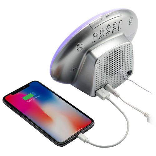 - Le port USB-A intégré de 5 W offre un endroit pratique pour recharger votre téléphone ou un autre appareil la nuit
